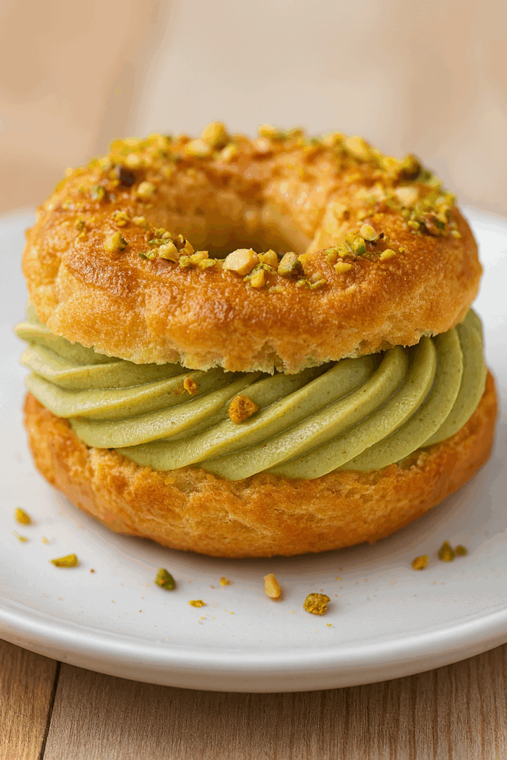Dolną część napełnij kremem pistacjowym (rękaw cukierniczy z ozdobną tylką).