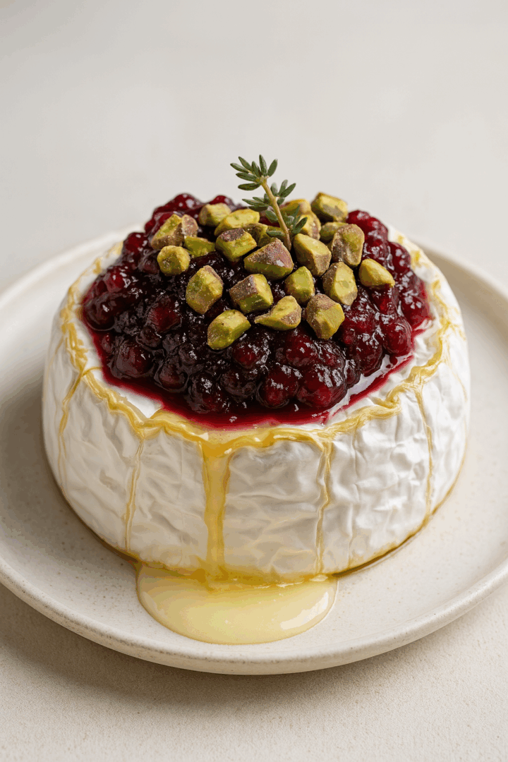 Przepis na pieczony ser camembert z żurawiną, pistacjami i miodem