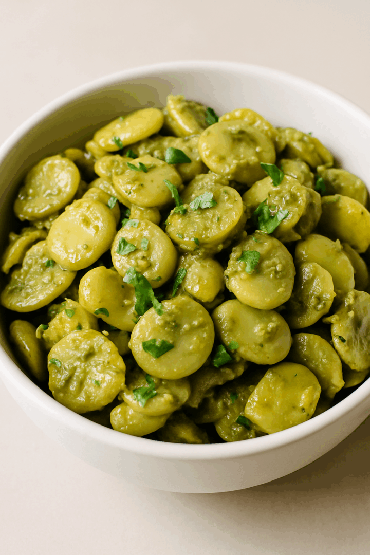 Przepis na sałatkę z bobu w zielonym sosie pesto
