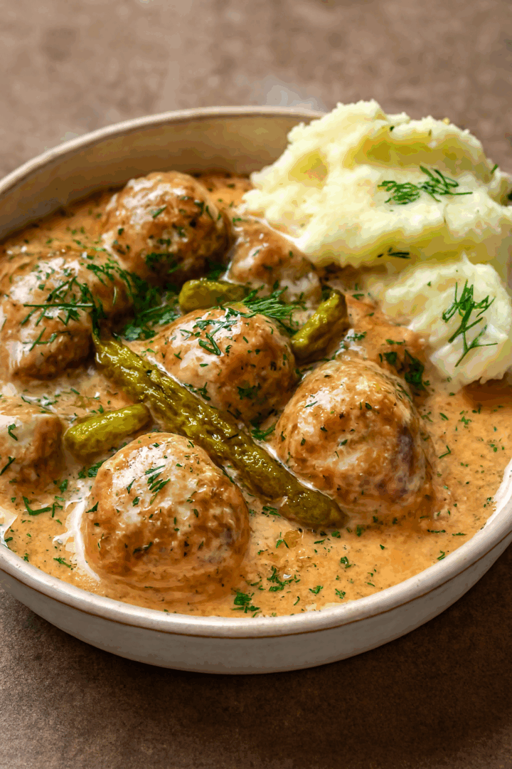 Pulpeciki w sosie koperkowo-śmietanowym z ogórkami kiszonymi