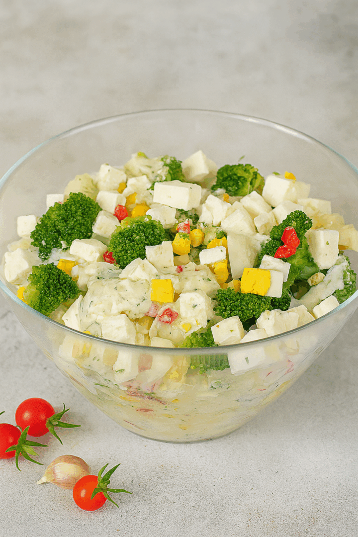 Pyszna i lekka sałatka z brokułem, fetą i jajkiem