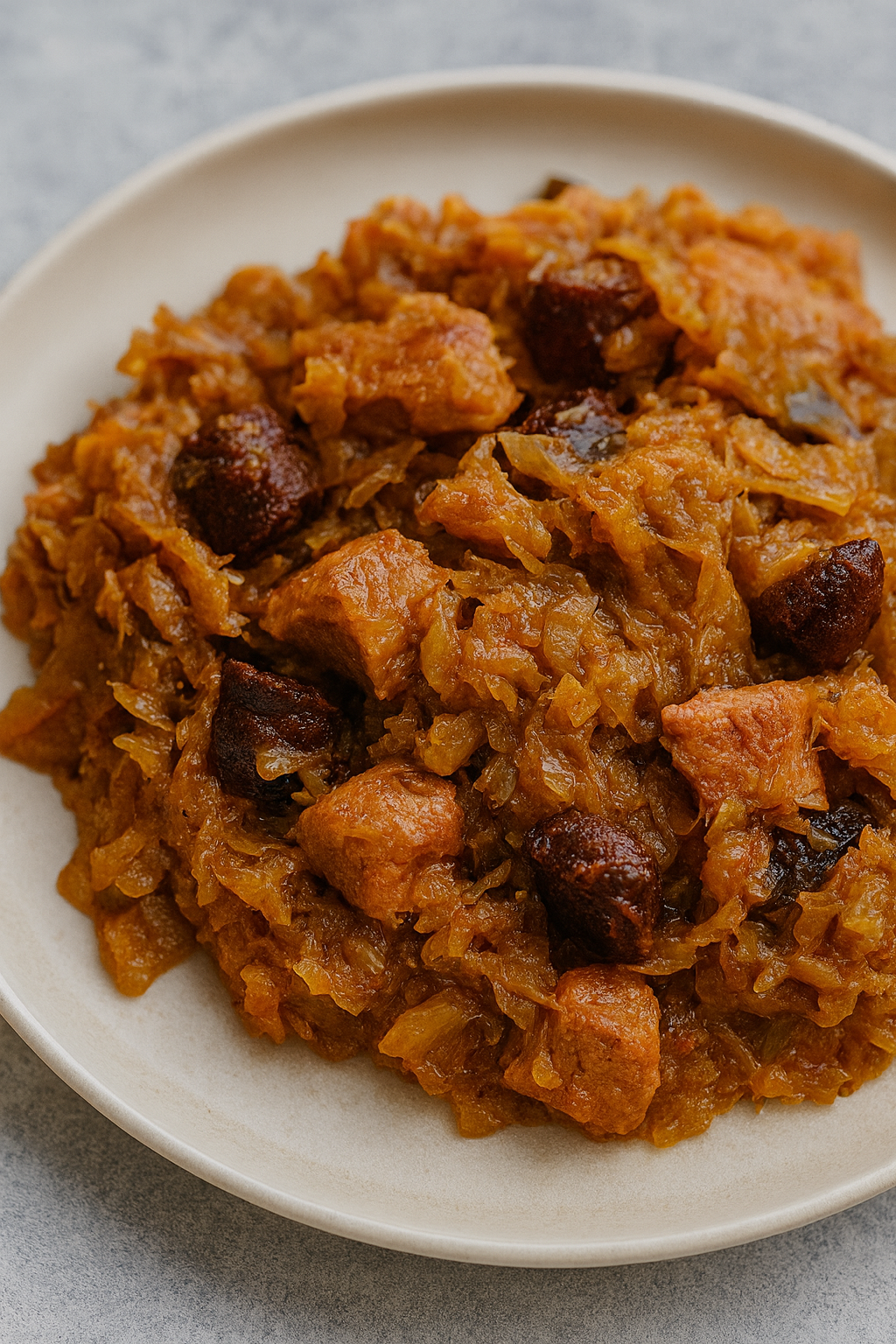 Składniki: (na ok. 10 porcji) 1,5 kg kapusty kiszonej 1 kg świeżej białej kapusty 500 g mięsa wieprzowego…