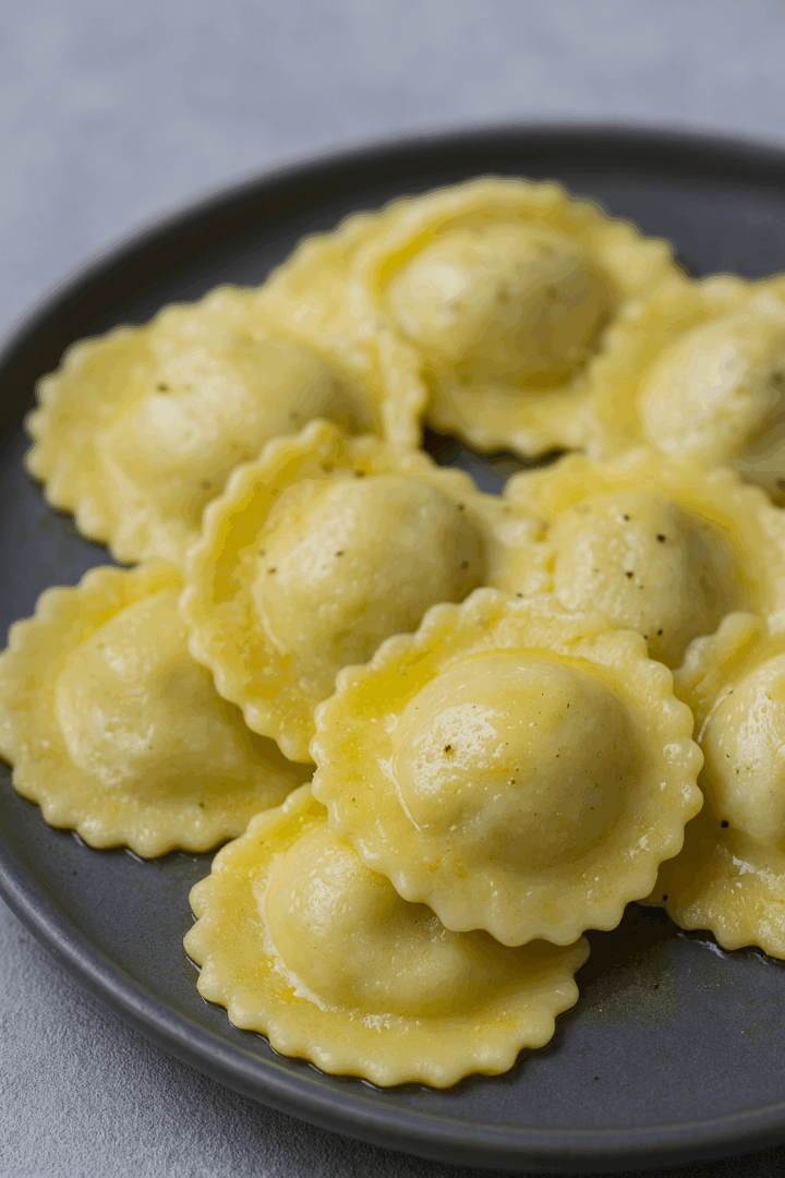 Gotuj ravioli w osolonym wrzątku przez 2–3 minuty, aż wypłyną na powierzchnię.