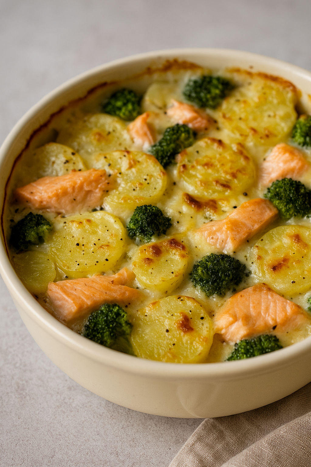 Pod koniec (na ostatnie 3–4 minuty) dodaj groszek i brokuły.