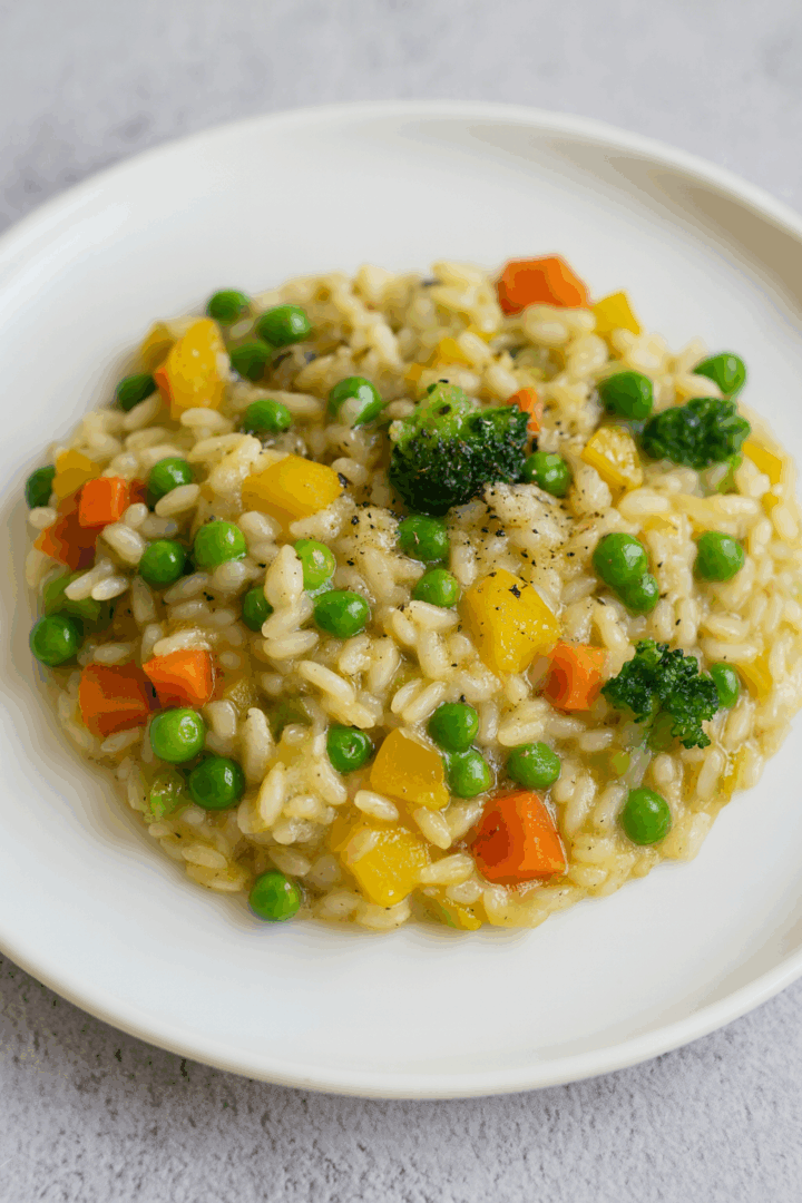 Gotuj ok. 18–20 minut, aż risotto będzie kremowe, a ryż miękki, lecz lekko al dente.