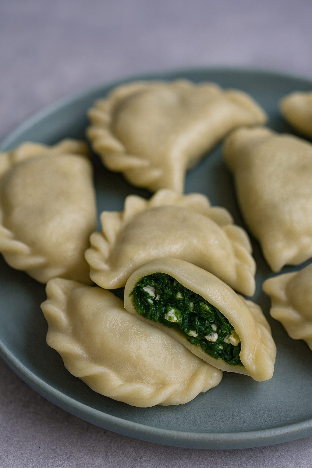 Blachę wstaw do piekarnika nagrzanego do 190°C (góra–dół) i piecz przez 20–22 minuty, aż ciasto będzie wyraźnie złociste, a ser w środku dobrze roztopiony.