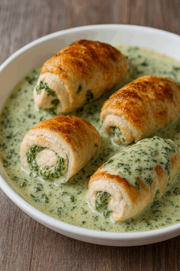 Włóż roladki do sosu, przykryj i duś 15–20 minut na małym ogniu, aż mięso będzie soczyste i miękkie.