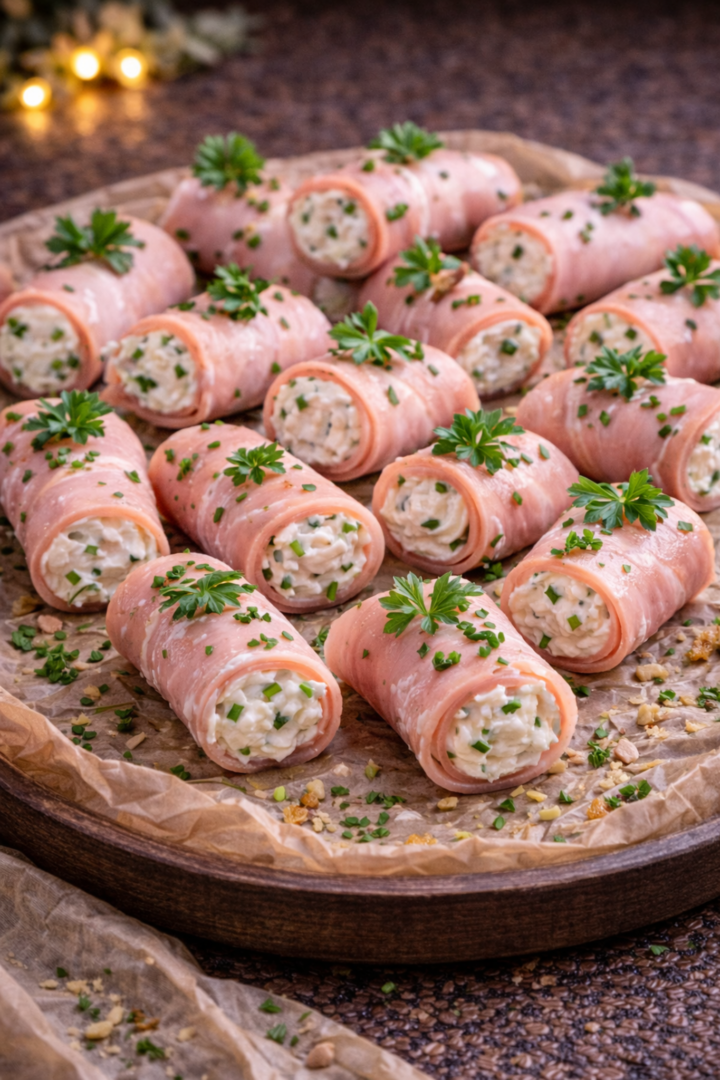 Roladki z szynki z farszem serowym i szczypiorkiem