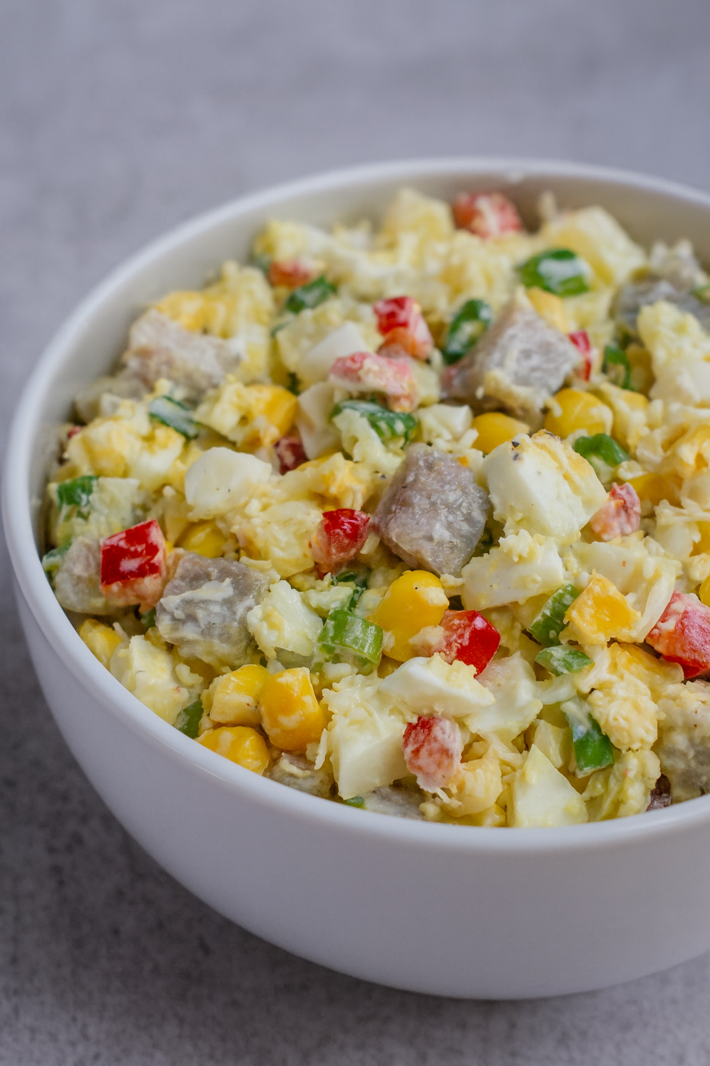 Jajka ugotuj na twardo, ostudź i drobno posiekaj.