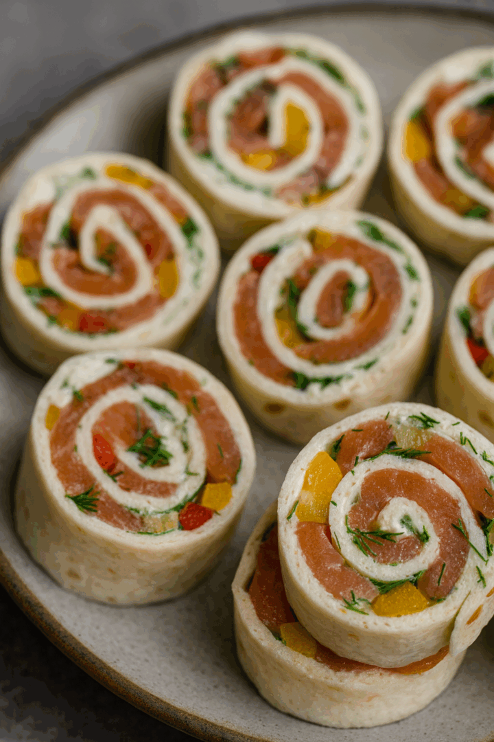 Łososia wędzonego możesz pokroić w cieńsze paski, jeśli plastry są duże.
