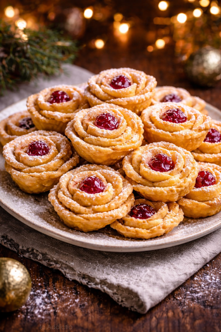 Różyczki z ciasta francuskiego z dżemem – ok. 12 sztuk