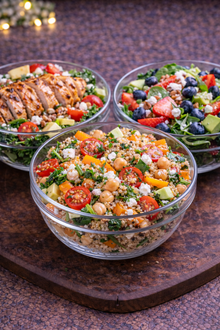 Sałatka bowl z komosą ryżową, ciecierzycą i warzywami