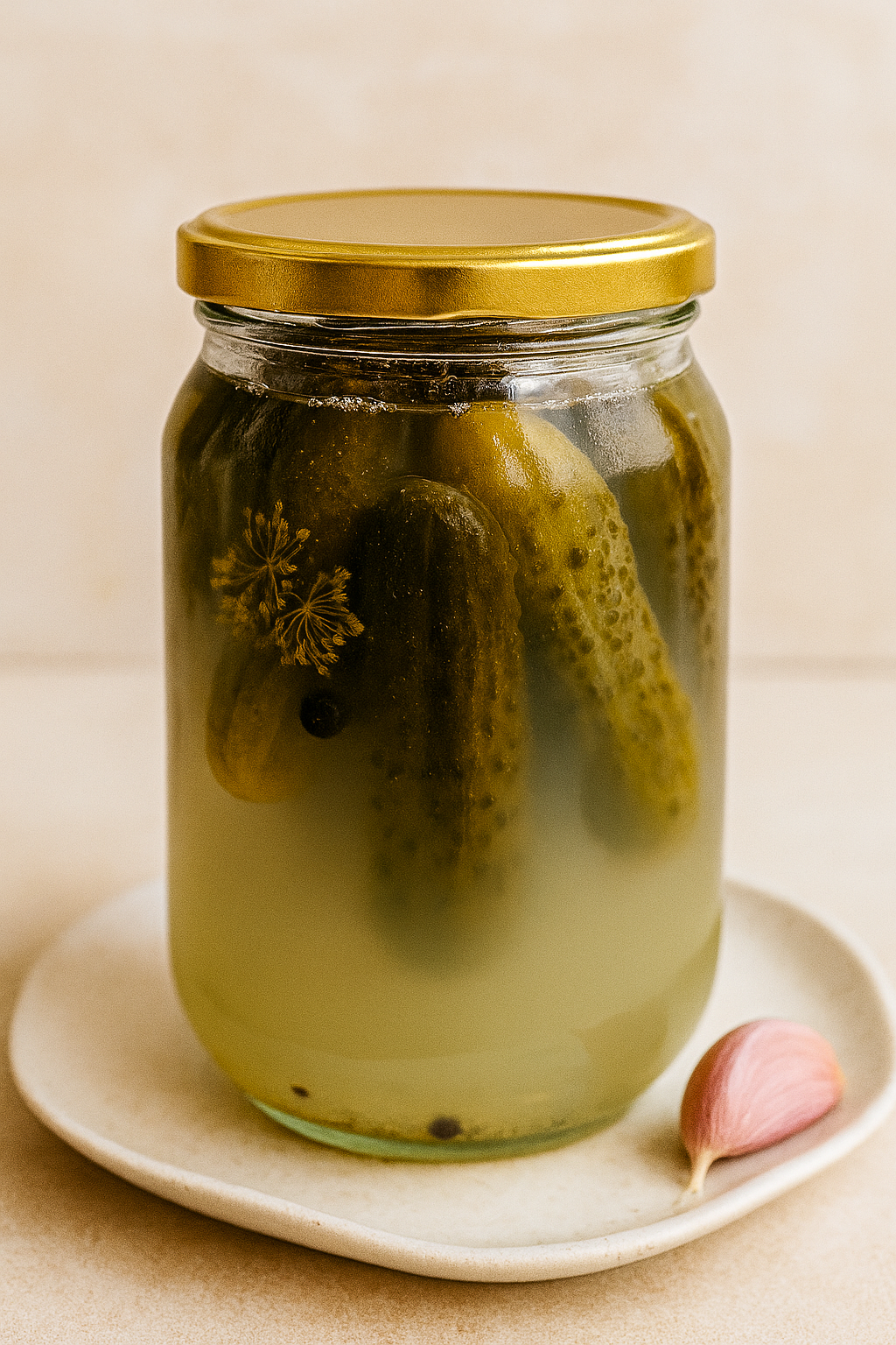 Składniki: 1 kg małych ogórków gruntowych, umytych i odsączonych 1–2 baldachimy kopru (lub 1 duża gałązka koperku) 3…