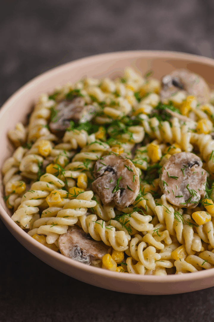 Sałatka makaronowa z pieczarkami i kukurydzą