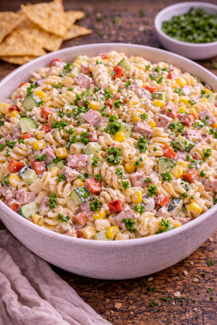 Sałatka makaronowa z szynką i warzywami