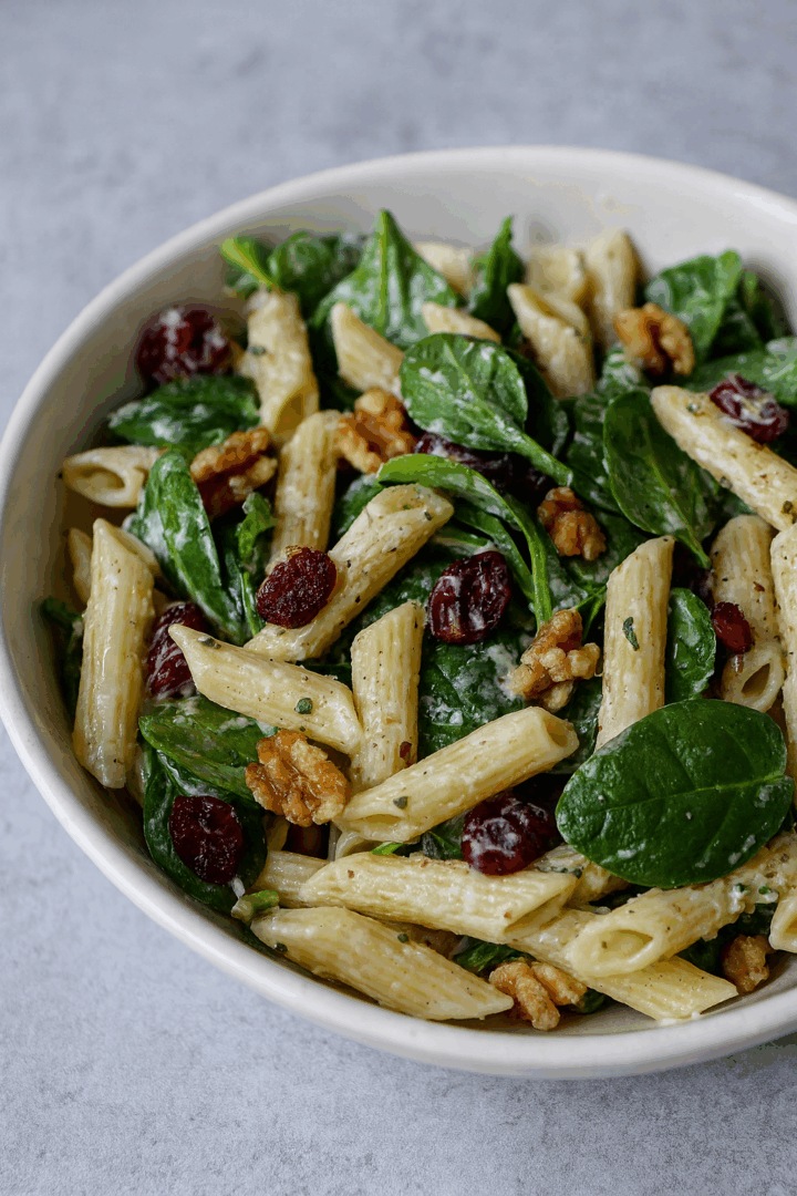 Sałatka makaronowa ze szpinakiem, orzechami i żurawiną