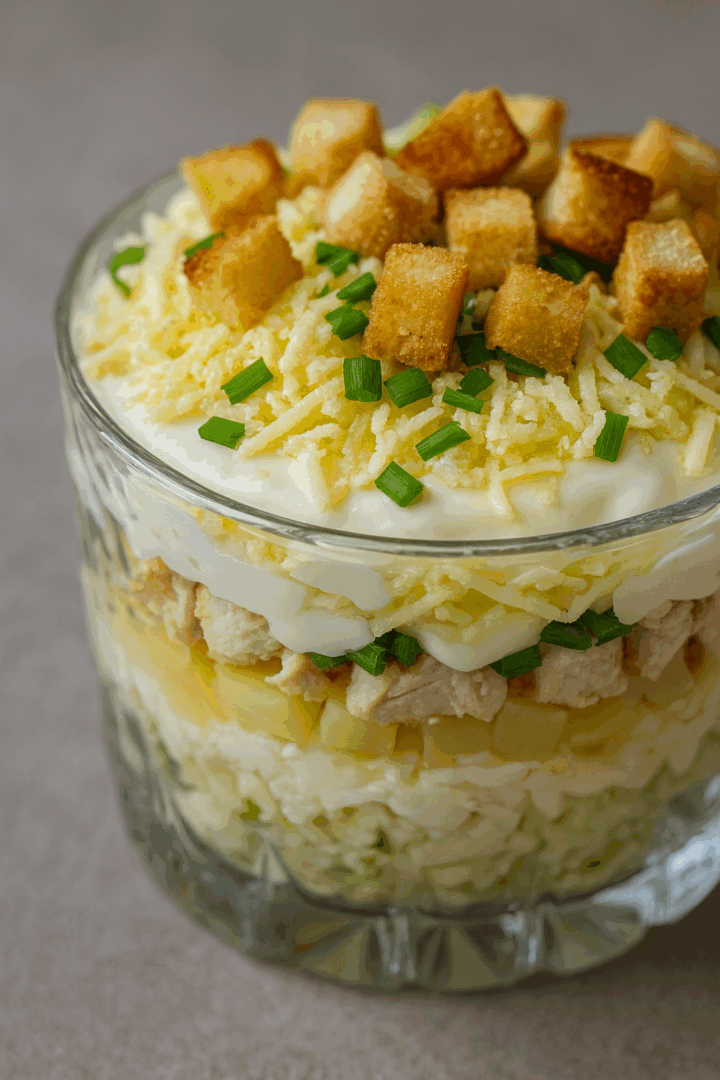 Na wierzchu połóż grzanki, posyp szczypiorkiem.