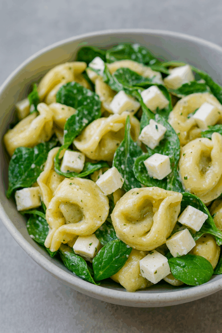 Sałatka z tortellini, fetą i szpinakiem