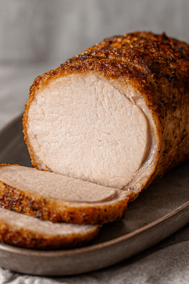 Po upieczeniu wyjmij schab i odstaw na 10–15 minut pod przykryciem (np. folią aluminiową).