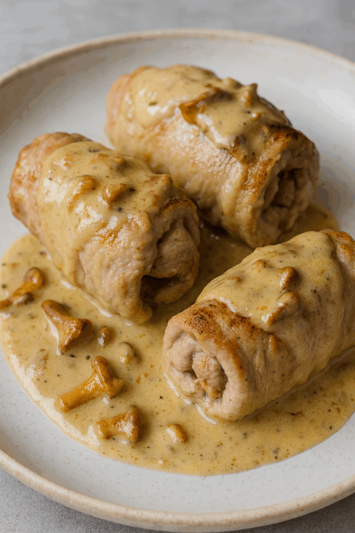 Podawaj gorące, polane sosem kurkowym.