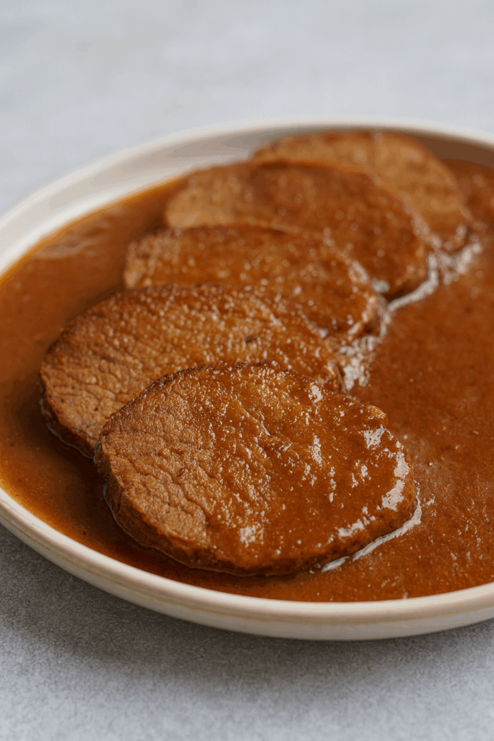Gdy mięso będzie gotowe, wyjmij plastry i odłóż.