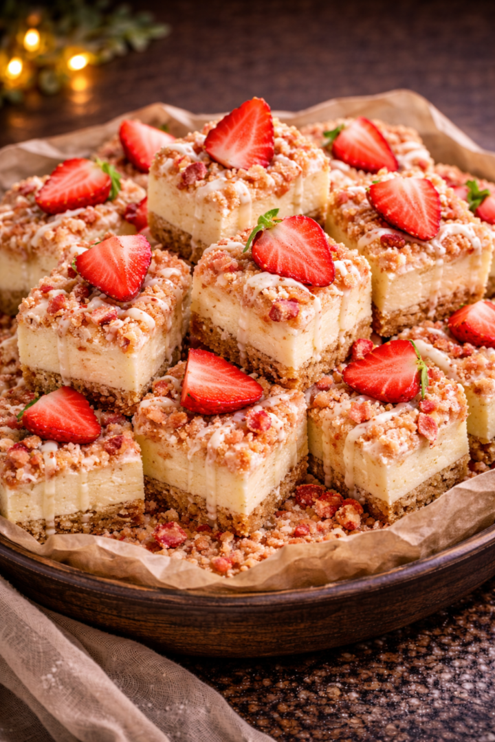 Sernik na kruchym spodzie z truskawkami i kruszonką