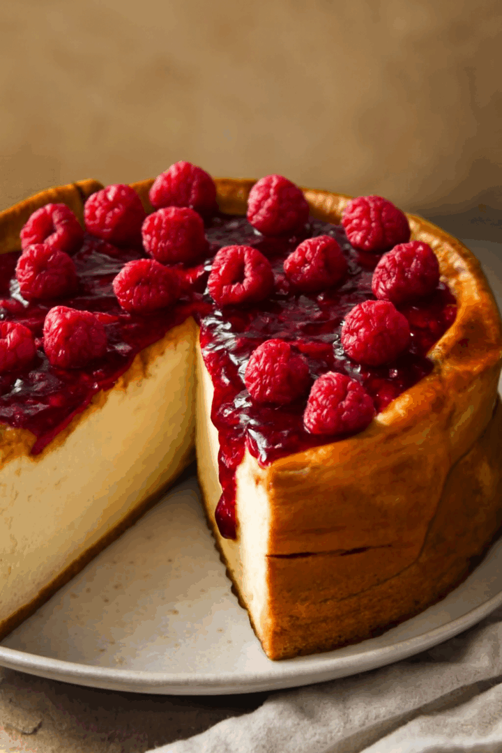 Podanie: Przed podaniem ozdób sernik świeżymi malinami. Smacznego!