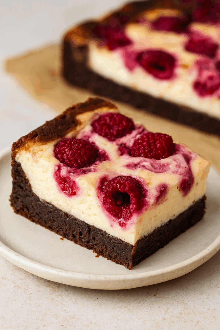 Sernikobrownie z malinami