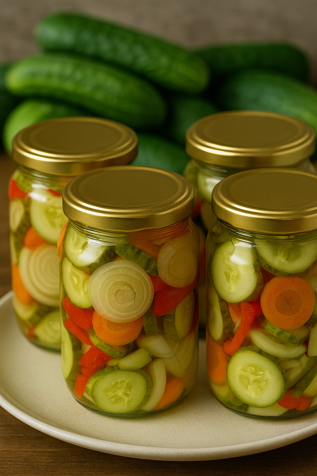 Składniki: na ok. 5 słoików 500 ml 1 kg małych ogórków gruntowych (lub korniszonów) 400 g marchewki 2…