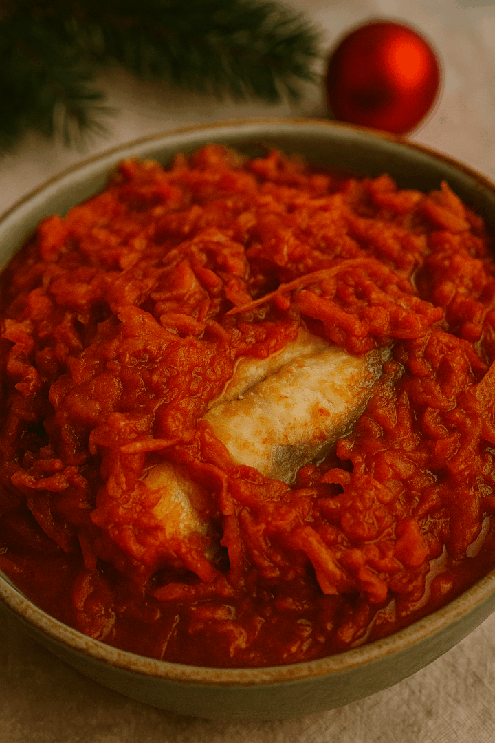 Śledzie po świątecznemu w sosie pomidorowym z warzywami