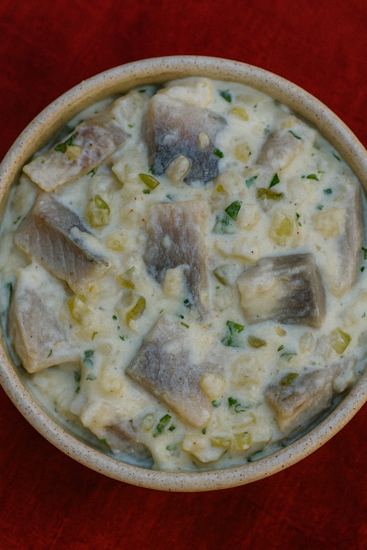 Pokroić śledzie na kawałki o wielkości 2–3 cm i włożyć je do miski.
