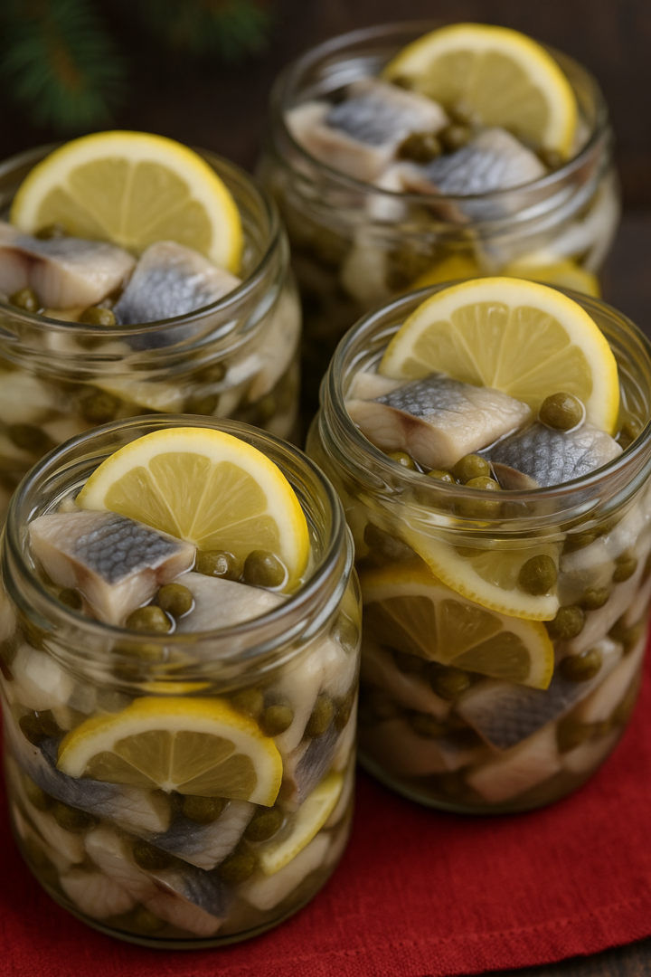 Śledzie z groszkiem i cytryną w zalewie