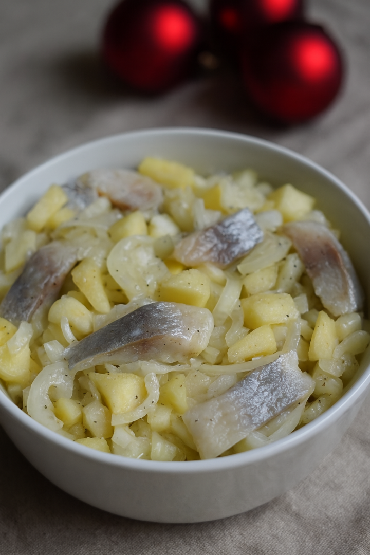 Śledzie z ziemniakami i cebulą w oleju