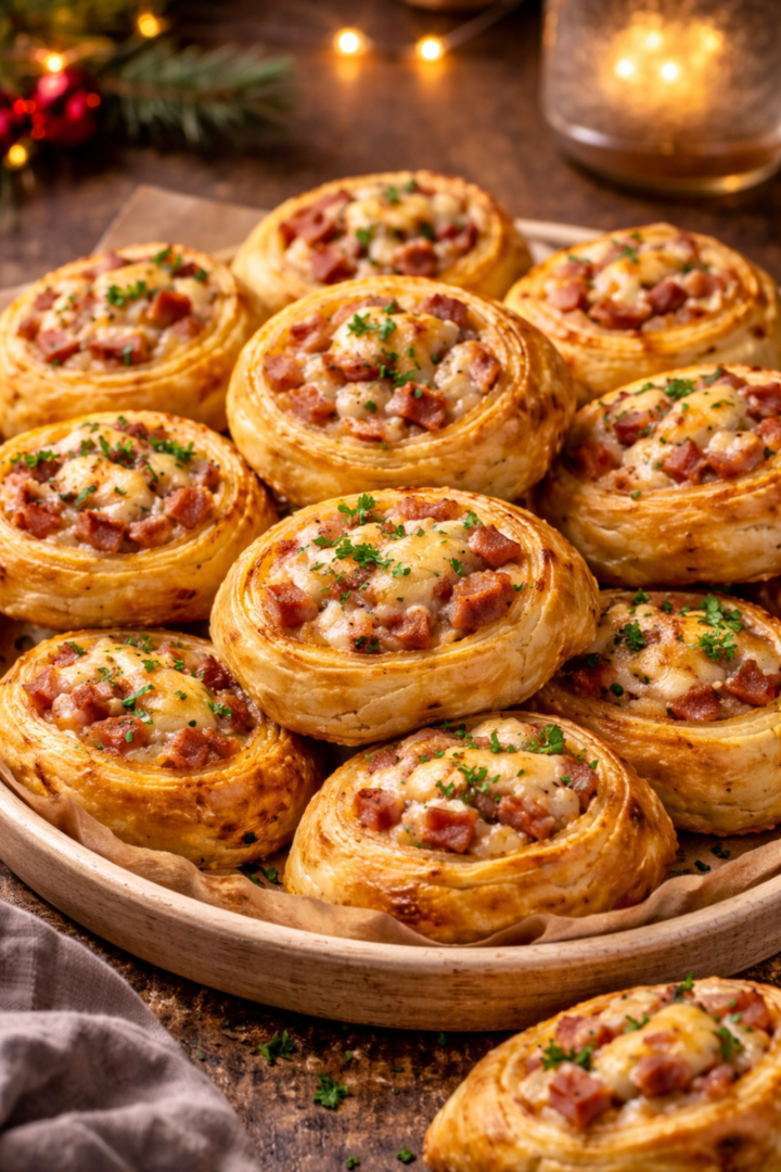 Ślimaczki z ciasta francuskiego z szynką i serem