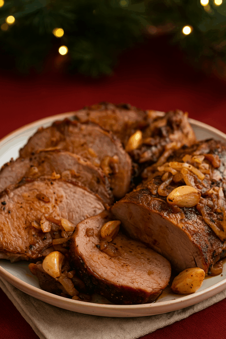 Świąteczna pieczeń z szynki z czosnkiem i cebulą