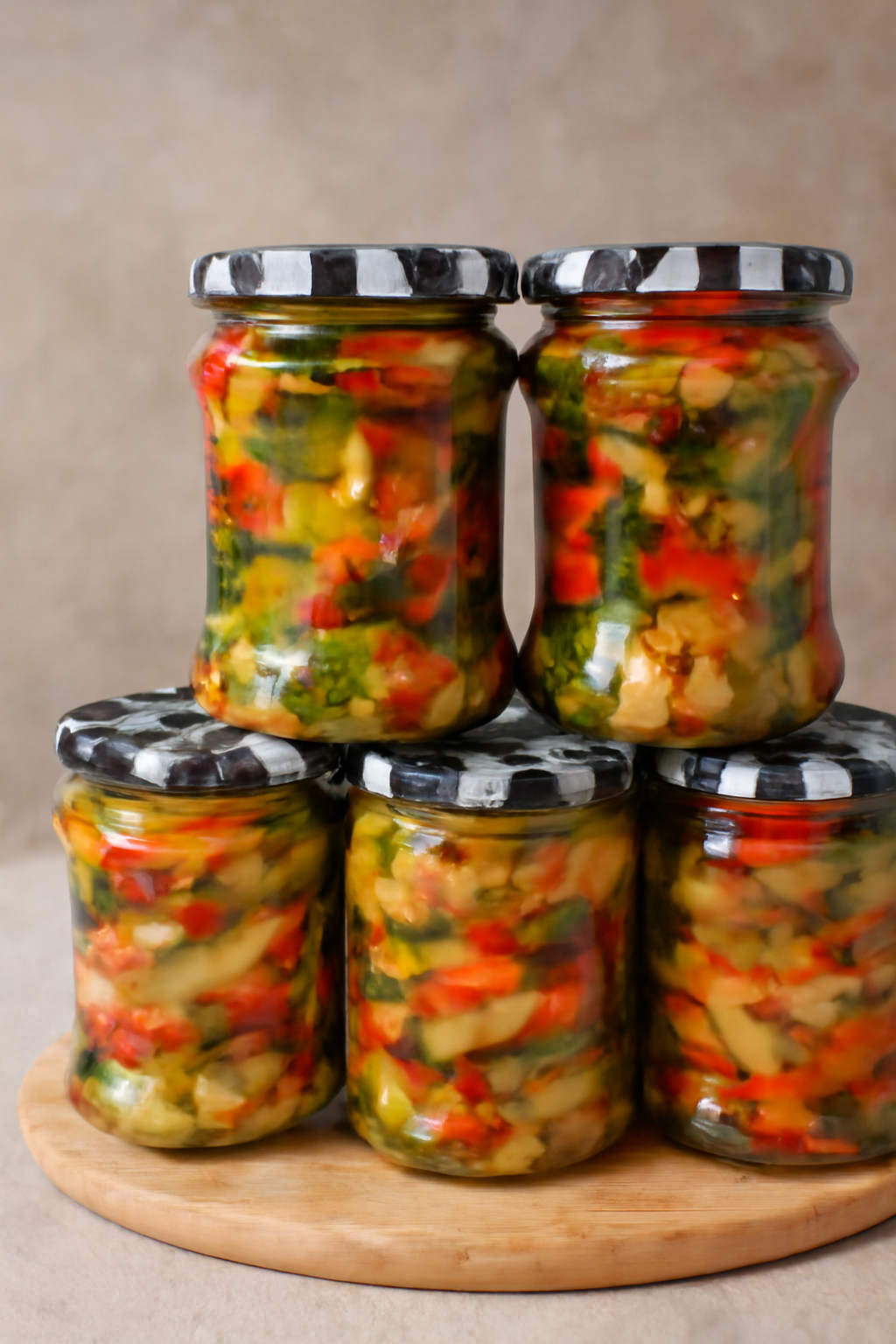 Składniki: (ok. 6 słoików 500 ml): 1 kg cukinii (najlepiej młodej) 0,5 kg papryki czerwonej 0,5 kg papryki…