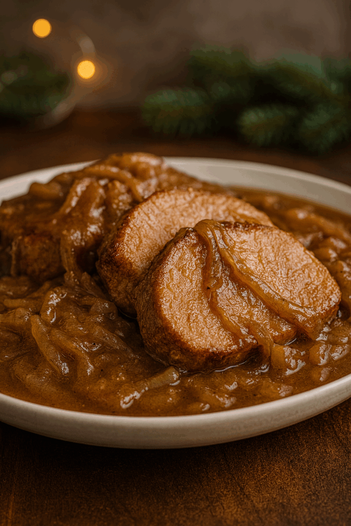 Świąteczna polędwiczka wieprzowa w kremowym sosie cebulowym
