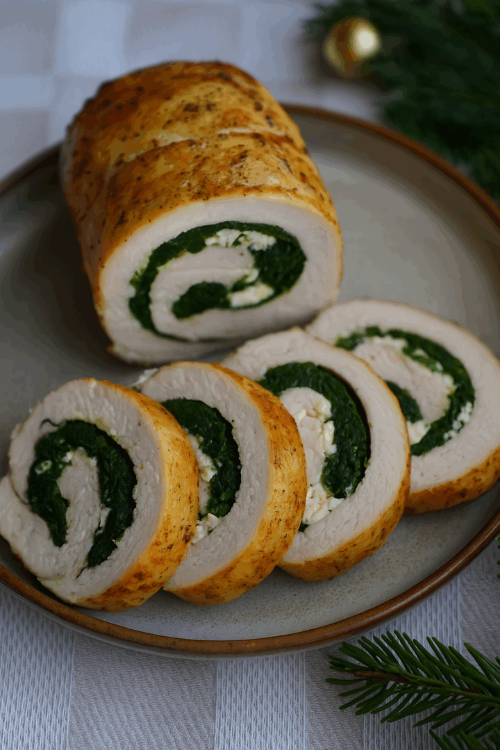 Świąteczna rolada z kurczaka ze szpinakiem i fetą
