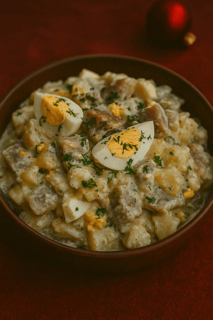 Świąteczna sałatka śledziowa z ziemniakami i jajkiem