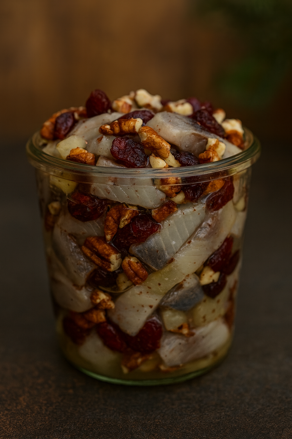Śledzie z żurawiną i orzechami pekan