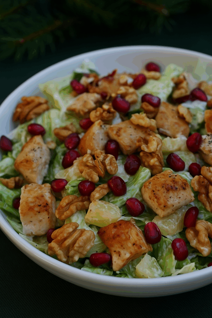 Świąteczna sałatka z kurczakiem, ananasem i granatem