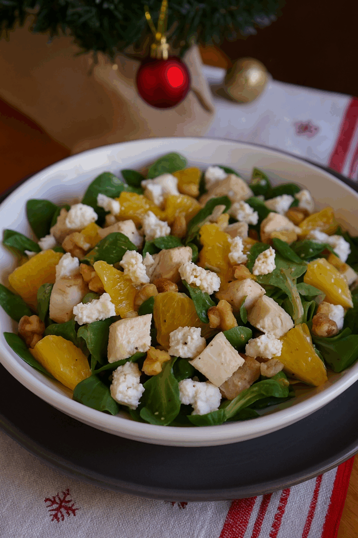 Świąteczna sałatka z kurczakiem, pomarańczą i orzechami