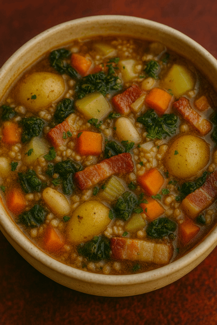 Świąteczna zupa krupnikowa z warzywami i boczkiem
