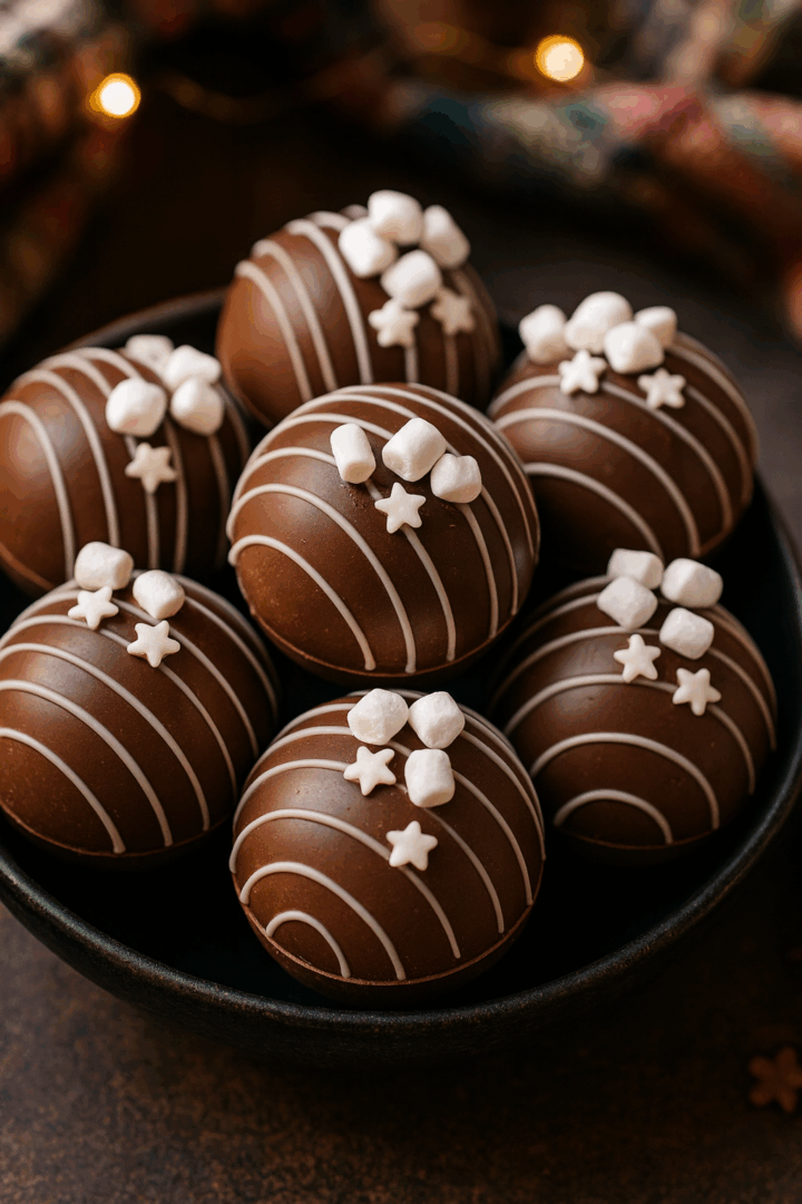 Do każdej półkuli wsyp 1 łyżkę kakao instant oraz kilka małych pianek marshmallow. Jeśli chcesz, możesz dodać również świąteczne posypki lub odrobinę cynamonu, aby wzmocnić aromat.