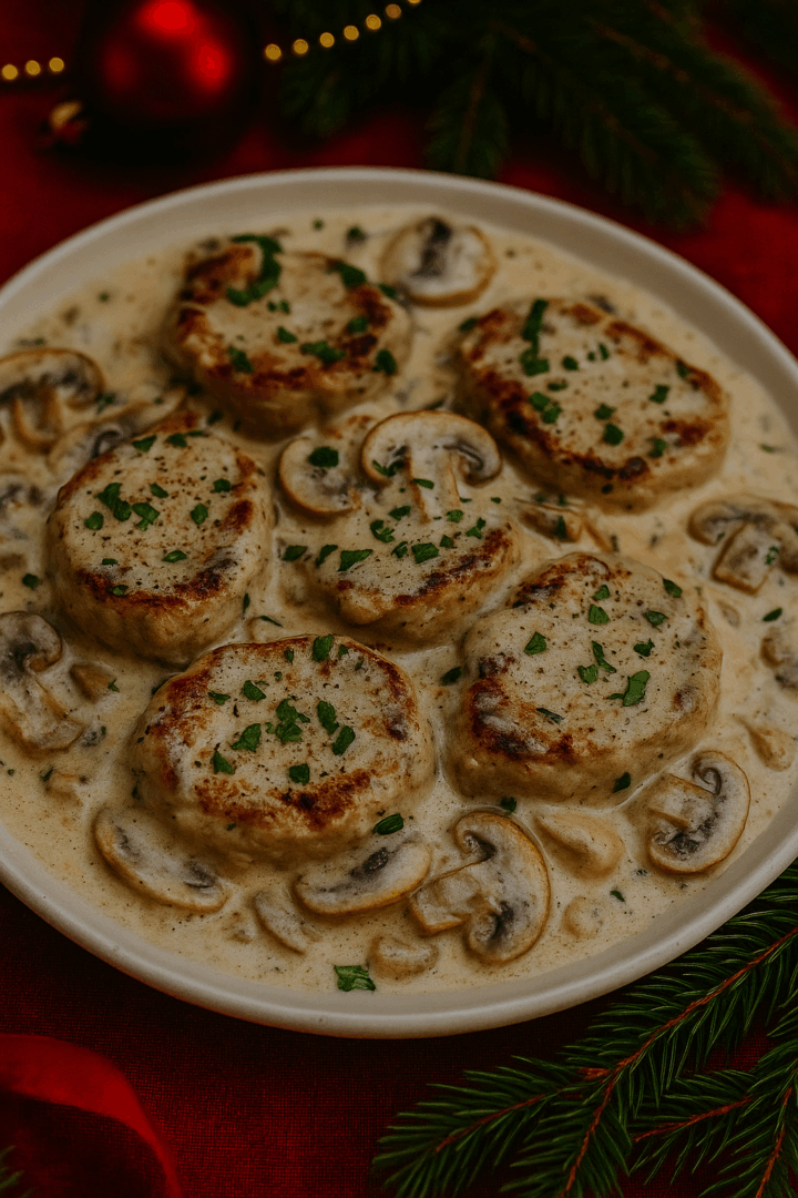Świąteczne medaliony drobiowe w sosie pieczarkowym