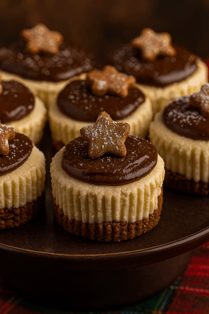Przygotuj polewę czekoladową, nałóż na serniczki i udekoruj pierniczkami. Schłódź w lodówce przez 2 godziny.