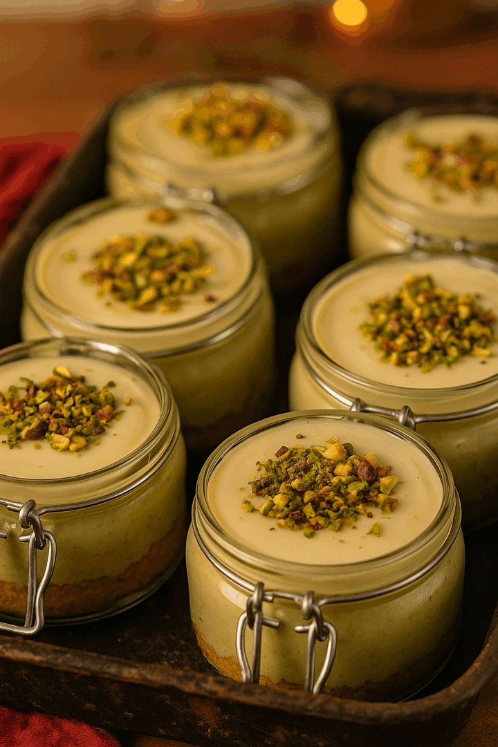 Świąteczne mini serniczki pistacjowe w słoiczkach