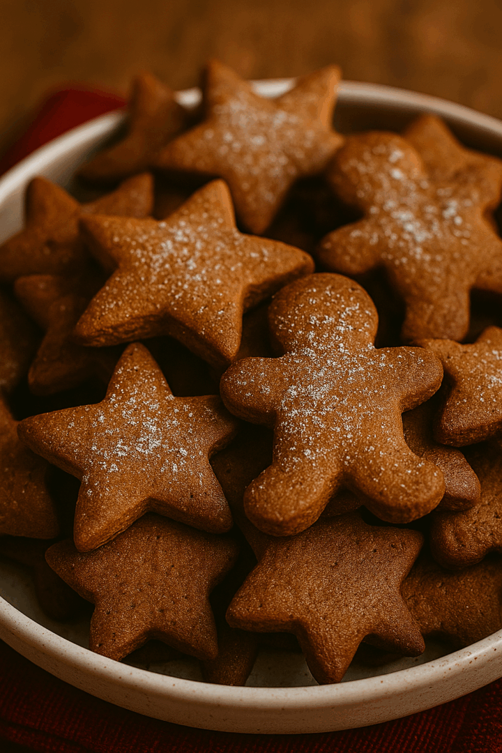 Rozwałkuj ciasto, wykrawaj pierniczki i piecz w 180°C przez 8–10 minut.