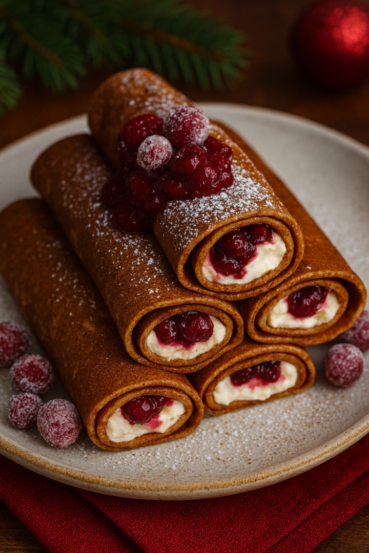 Świąteczne piernikowe naleśniki z kremem waniliowym i wiśniami