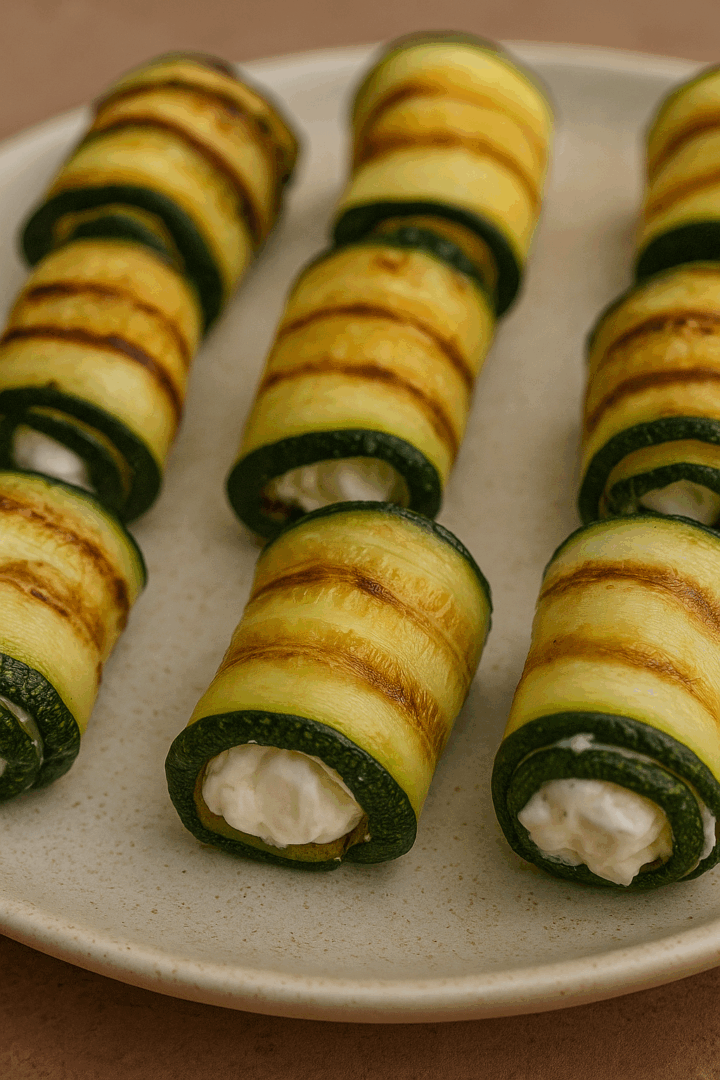 Na każdy plaster cukinii nałóż porcję nadzienia i zwiń w rulonik.